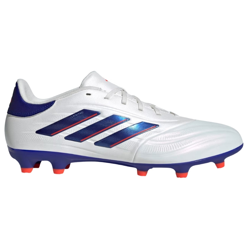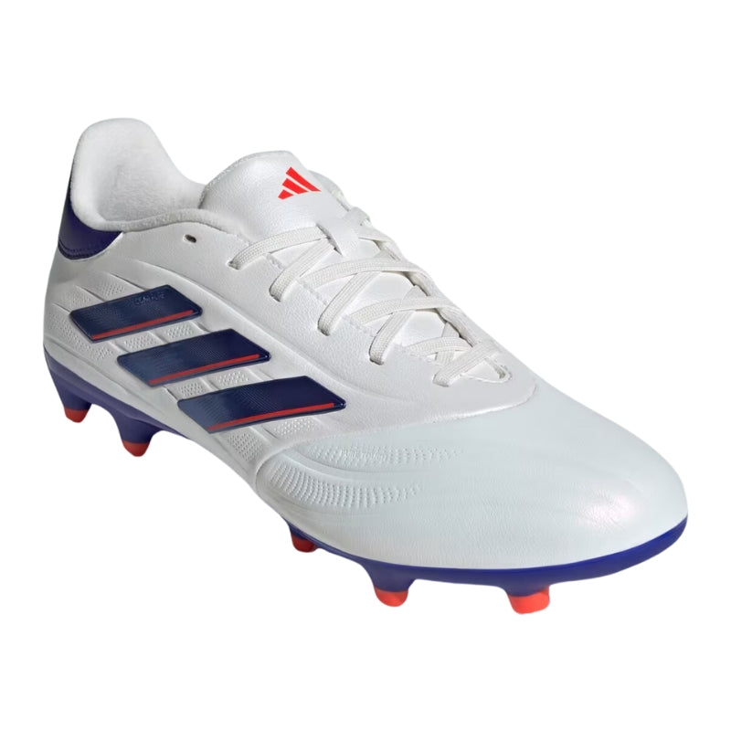 From brain to boot, and back again. Connect with the ball on every level in adidas Copa Pure 2. The comfortable upper on these League cleats shows off vintage details, ensuring you look and feel as classy as your soccer. Its cow leather forefoot delivers a cultured touch. Underneath, a firm ground outsole makes for unflustered play.