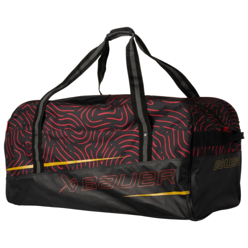Organize junior hockey essentials with the Bauer Premium Hockey Carry Bag - Junior (2025), featuring 600D polyester ripstop construction for rugged durability. Its 151L main compartment offers ample gear storage with a straight-access zipper, while dual end pockets + external water bottle sleeve keep accessories secure. Enhanced by premium dual-sided ventilation to reduce odors and an eye-catching topographical pattern, this bag blends smart organization with standout style.
