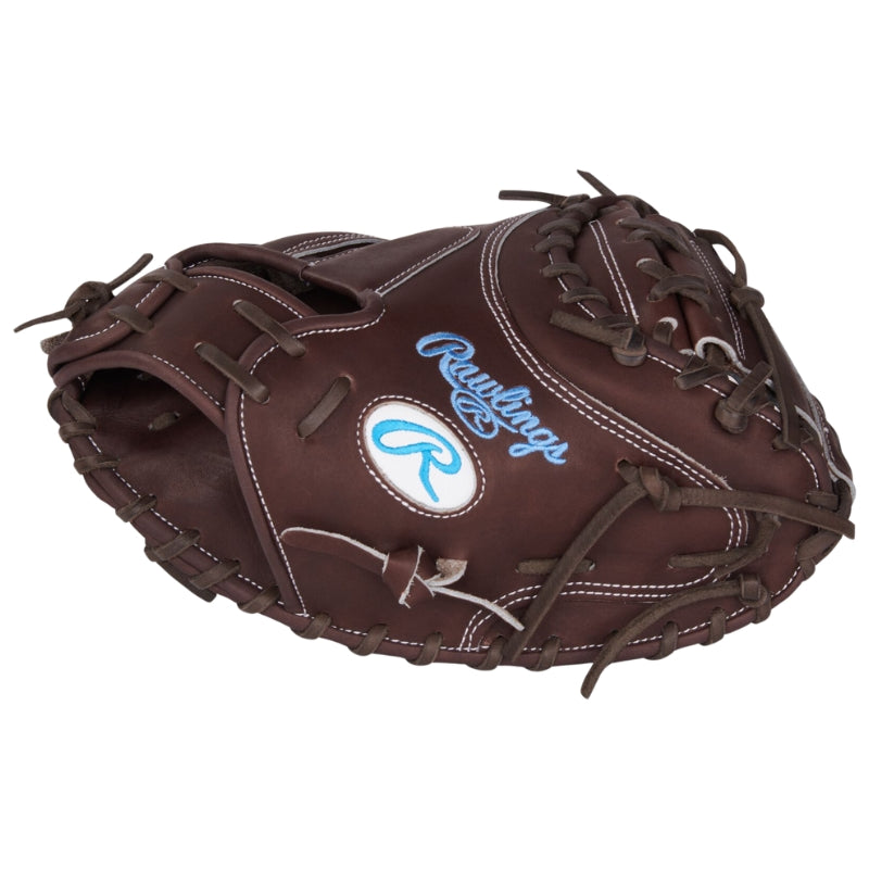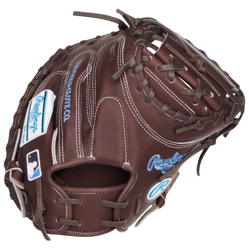 The Rawlings Heart of the Hide 33.5" Baseball Catcher’s Mitt combines pro-level precision and luxurious craftsmanship for elite catchers. Built with top-grade U.S. steer hide leather, it offers unmatched durability and a supple feel, while the CM335 pattern and 1-piece solid web ensure sharp strike framing and rapid transfers to nab base stealers. The R2G (Ready2Go) Technology slashes break-in time to just 35 hours, and the redesigned heel pad enhances pocket stability and impact absorption. Dressed in rich chocolate leather with bold Columbia Blue accents, this mitt blends standout aesthetics with performance trusted by pros, college, and high school athletes.
